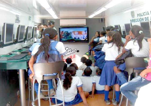 En un bus interactivo, la Policía de la Guajira, capacita a los niños en la prevención al uso y abuso de las drogas y la violencia. La estrategia, pretende llegar a más de mil niños y adolescentes de los 15 municipios de La Guajira. El bus, se encuentra totalmente dotado de computadores, televisores, y paquetes de intercambio, para facilitar a los menores que entiendan el daño que causa consumir drogas, que los lleva a vivir en medio de la violencia.
