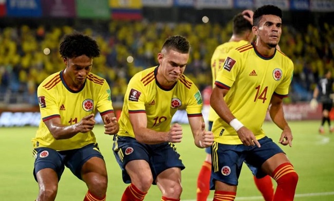 David Ospina; Stefan Medina, Yerry Mina, Carlos Cuesta, Johan Mojica; Juan Cuadrado, Wilmar Barrios, Matheus Uribe, Luis Díaz; Rafael Santos Borré y Radamel Falcao García.