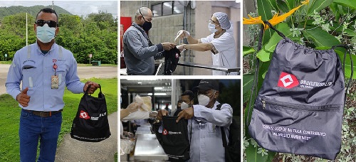 La acción más reciente se inició el 30 de noviembre del año en curso al incorporar una tula o bolsa reutilizable para que sus trabajadores pudieran empacar las comidas viajeras que le son suministradas todos los días, en la mañana y en la tarde, durante el cambio de turno de la operación.
