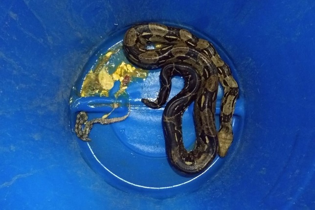 La serpiente dio a luz una cría de 45 cm de longitud. Las autoridades creen que puede haber más crías en el Simón Bolívar.
