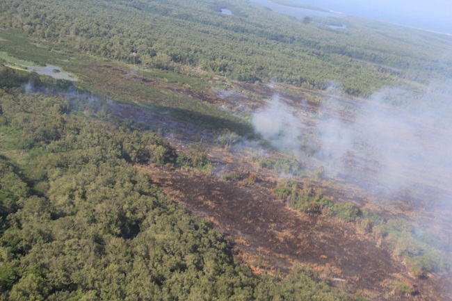 El fuego y las fuertes columnas de humo han causado la muerte y el desplazamiento de varias especies que habitan en ese ecosistemas, como caimanes, zorros y distintas familias de aves.