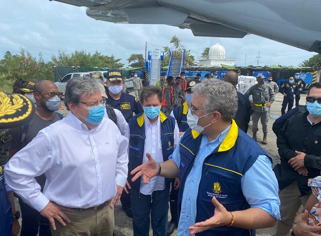 “Vamos a llegar con ayuda humanitaria, estamos esperando que las embarcaciones de la Armada tengan las condiciones para llegar a Providencia. Hablamos con Jorge Norberto Gari Hooker, alcalde de Providencia, quien nos informó que hay una afectación máxima de la infraestructura, con una destrucción del 98 o 99 %. El balance preliminar es que hay una persona que ha fallecido y otra desaparecida. Esperamos atender y evacuar a los heridos”, dijo Duque.