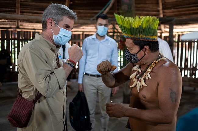“Es claro que los pueblos étnicos en general dan testimonio de la adaptación al cambio. Sus tradiciones, su cosmovisión y conocimientos son el resultado de prácticas productivas, sociales y culturales relacionadas con el territorio colectivo y la biodiversidad en la que viven. Los diferentes planes que estamos ejecutando en la Amazonía y en tantas otras regiones del país junto a las comunidades indígenas contribuyen a las metas que el país quiere cumplir y que forman parte del Acuerdo de París, entre estas la reducción en un 51 % de los Gases de Efecto Invernadero al año 2030”, dijo el ministro Correa.