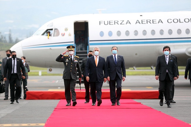 El presidente de Colombia, Iván Duque, llegó este domingo a Quito para delinear con su homólogo ecuatoriano, Guillermo Lasso, estrategias en seguridad, medioambiente y reactivación económica.