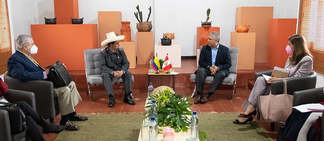 “Quiero, además, expresarle, Presidente (Pedro Castillo), que los objetivos que nos hemos trazado de llevar más inversión colombiana al Perú y más inversión peruana a Colombia, los vamos a trabajar de manera decidida”, dijo.