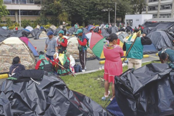 Los miles de embera, que llegaron en más de 60 autobuses y están acampados frente al edificio de la Agencia Nacional de Tierras (ANT) de Bogotá, permanecerán asentados en las instalaciones hasta que el gobierno escuche sus peticiones, y aseguran que se quedarán "el tiempo que haga falta".