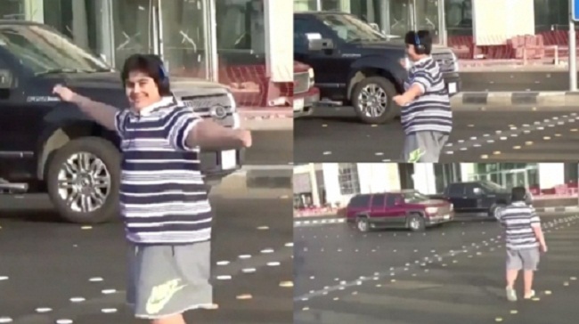 El menor, que llevaba un polo a rayas, pantalones cortos y auriculares, se paró en un paso de cebra en una calle llena de coches en Yeda y bailó durante un minuto "La Macarena" delante de los coches parados.
