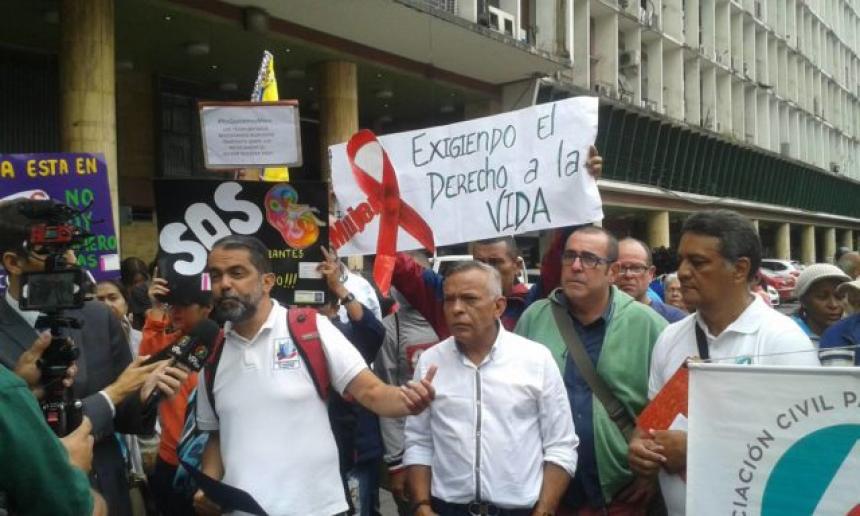 En la protesta, la ONG Red Venezolana de Gente Positiva entregó a la Organización Panamericana de la Salud (OPS) un documento en el que denuncia que "más de 80.000 personas con VIH y sida se encuentran afectadas y en peligro por el desabastecimiento de 100% de medicamentos antirretrovirales".