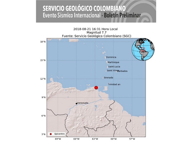 Según informa el Servicio Geológico Colombiano, el temblor se registró a las 4:31 de la tarde, siendo la ciudad de Maturín (Monagas) la más cercana al epicentro.