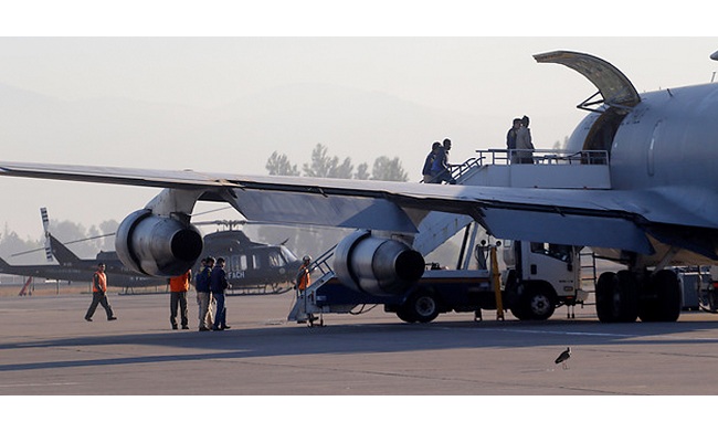 Catorce de los expulsados fueron embarcados en un avión de transporte de la Fuerza Aérea de Chile que despegó de una base militar de Santiago, y cuyo plan de vuelo prevé una escala en la norteña ciudad de Iquique, donde se agregarán otros siete, para después seguir hasta Bogotá.