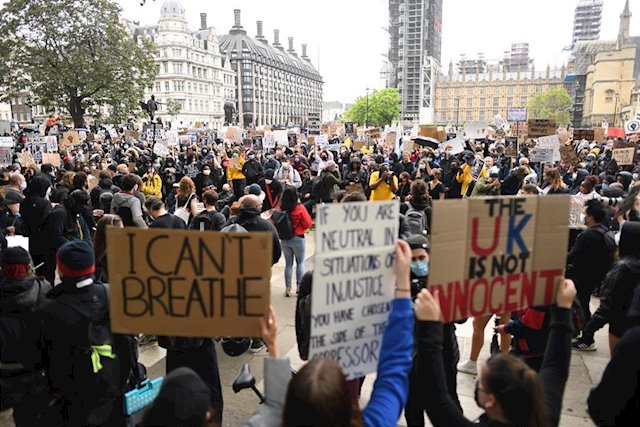 El asesinato del afroamericano George Floyd el 25 de mayo en Estados Unidos ha generado una ola de protestas pacíficas y manifestaciones en contra del racismo en muchos países que piden acabar con la brutalidad policial y la discriminación contra las personas negras. EFE