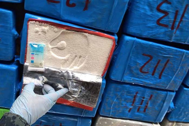 La PCD reportó que la droga estaba distribuida en paquetes con plástico verde transparente, que contaban además con dos tipos de logo y sumaban en total 300 kilos de cocaína.