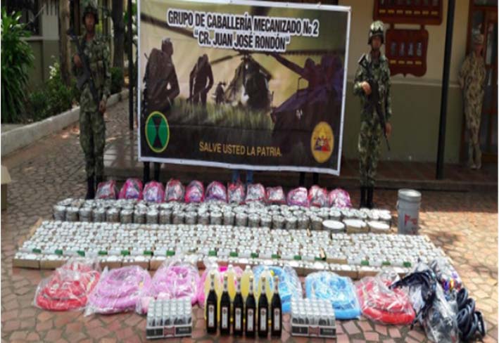 170 mil unidades de cigarrillos de marca D&J, avalorado aproximadamente en 9 millones de pesos y 36 litros de whisky something con un valor de 2 millones de pesos, fueron decomisados por miembros del Ejército Nacional.