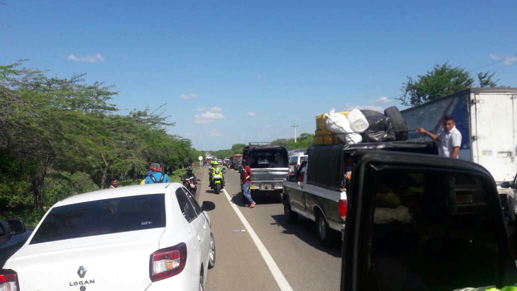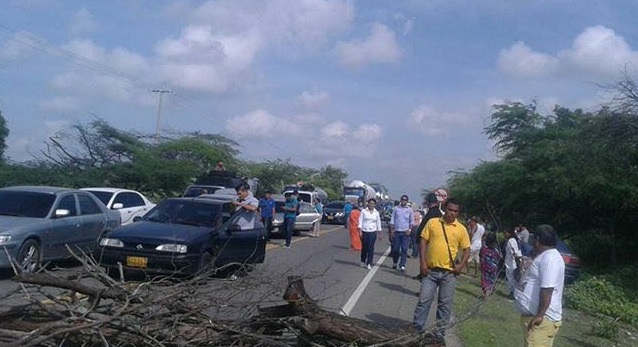 Docentes de Manaure (La Guajira) bloquearon hoy la vía que comunica a Riohacha con Maicao por retraso en el pago de sus salarios.