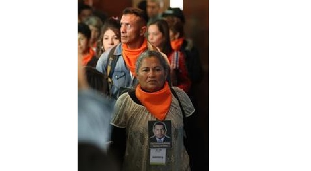 Familiares de víctimas de ejecuciones extrajudiciales asisten a una audiencia del excomandante del Ejército de Colombia general retirado Mario Montoya en la Jurisdicción Especial para la Paz (JEP).