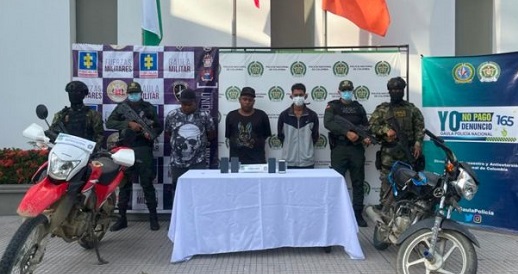 Como presuntos responsables del delito de concierto para delinquir con fines de extorsión, la Fiscalía General de la Nación obtuvo medida de aseguramiento en centro de reclusión contra Carlos Mario Salazar Tapia, alias El Cura; Arley Darío Gallego Torres, alias Pipón; y Cristian Antonio Pérez Paternina, alias Captulo.