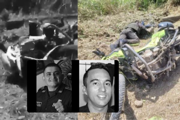 "Condenamos el atentado terrorista que segó la vida de dos valientes policías: Intendente jefe Jaime Luis Álvarez Mantilla, comandante de la subestación del corregimiento  Y de Astilleros, en Sardinata (Norte de Santander), y subintendente Carlos Alberto Ramírez Ramírez", detalló la Policía en un comunicado.