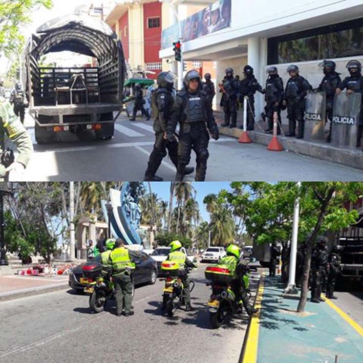 El Esmad acordonó los edificios de la gobernación, Fiscalía y demás entidades en la calle primera de Riohacha, ante la amenaza de brotes de violencia por parte de los simpatizantes del actual alcalde detenido.