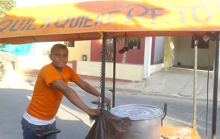 Muchos coinciden en la idea: "lo que hace tan llamativo el peto además de su sabor, es el carisma de quien lo vende"; este hombre es, oriundo del corregimiento de Camarones, pero desde hace 24 años reside en Riohacha.