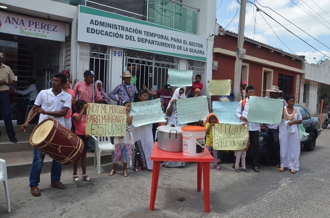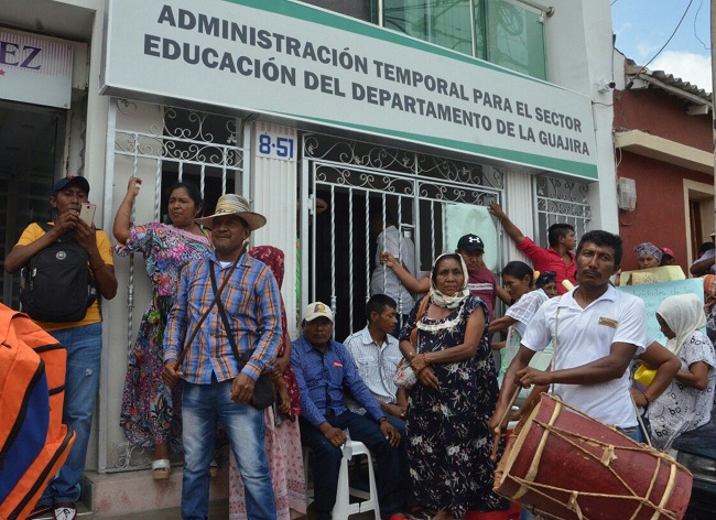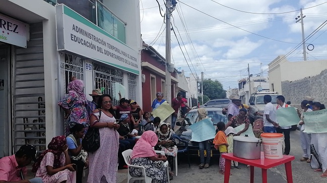 Indígenas wayuu este martes se tomaron la oficina de Administración Temporal del Sector de Educación del departamento de La Guajira, con el fin de exigir mejoras en el tratamiento que tienen las organizaciones competentes al pago de las manipuladoras de alimentos en las comunidades indígenas wayuu que para el trabajo y la atención que hacen es poco lo que ganan.