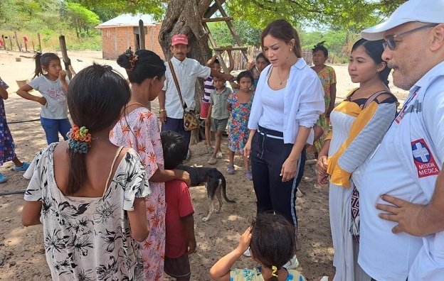 Yaneris Cotes Cotes, con los niños de La Guajira.