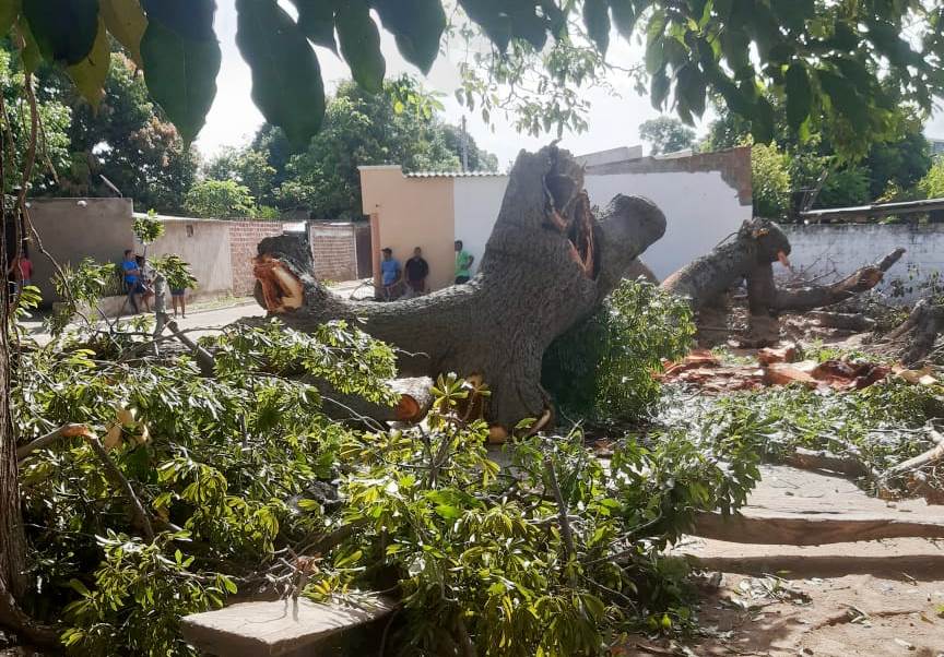 Otra corpulenta rama de este árbol se vino a tierra en la mañana de este domingo y por fortuna sin ocasionar esta vez ningún daño material, como el pasado martes 19 de julio cuando uno de estos gruesos follajes, cayó en parte del techo y el patio de una casa, en la famosa “calle de la tranca” causándole lesiones leves a la señora, Marlin Zapata Rincones.