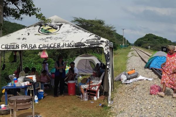 Se completa una semana de permanecer bloqueando el tramo de la línea férrea que pasa en inmediaciones de la glorieta para tomar la entrada a la población de Albania en el centro de La Guajira, indicando que es el último recurso que encontraron para ejercer presión sobre la institucionalidad.