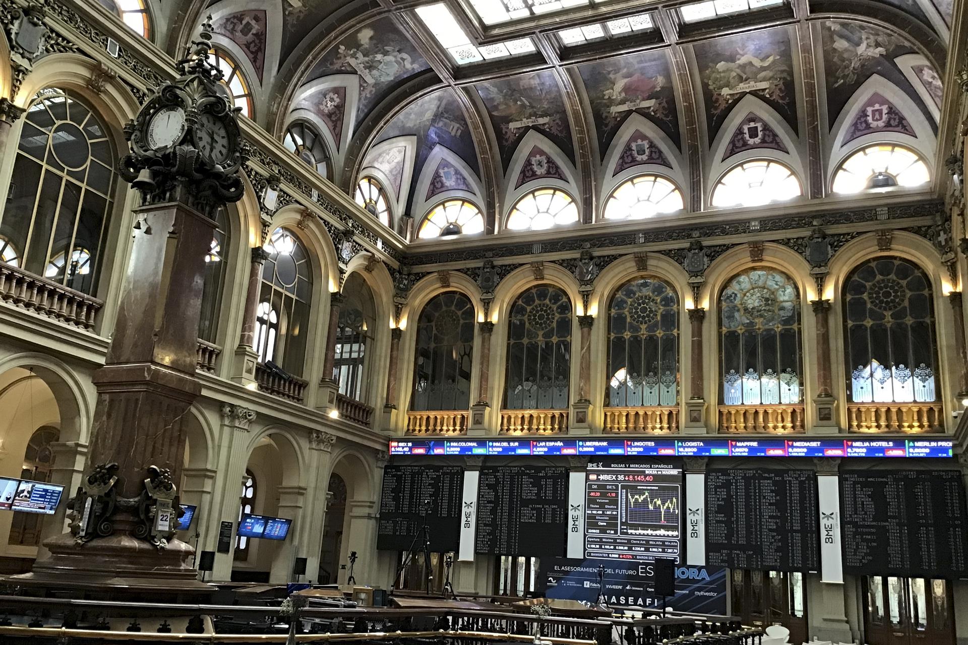 La bolsa española perdió el nivel de los 8.200 puntos tras retroceder el 1,1 % por el descenso de las eléctricas y a pesar de la subida de Wall Street después de la comparecencia del presidente de la Reserva Federal, Jerome Powell, en el Senado estadounidense. El índice de referencia del parqué nacional, el IBEX 35, ha perdido 90,2 puntos, ese 1,1 %, hasta 8.145,4 puntos. En el año acumula una bajada del 6,52 %. (Foto EFE)