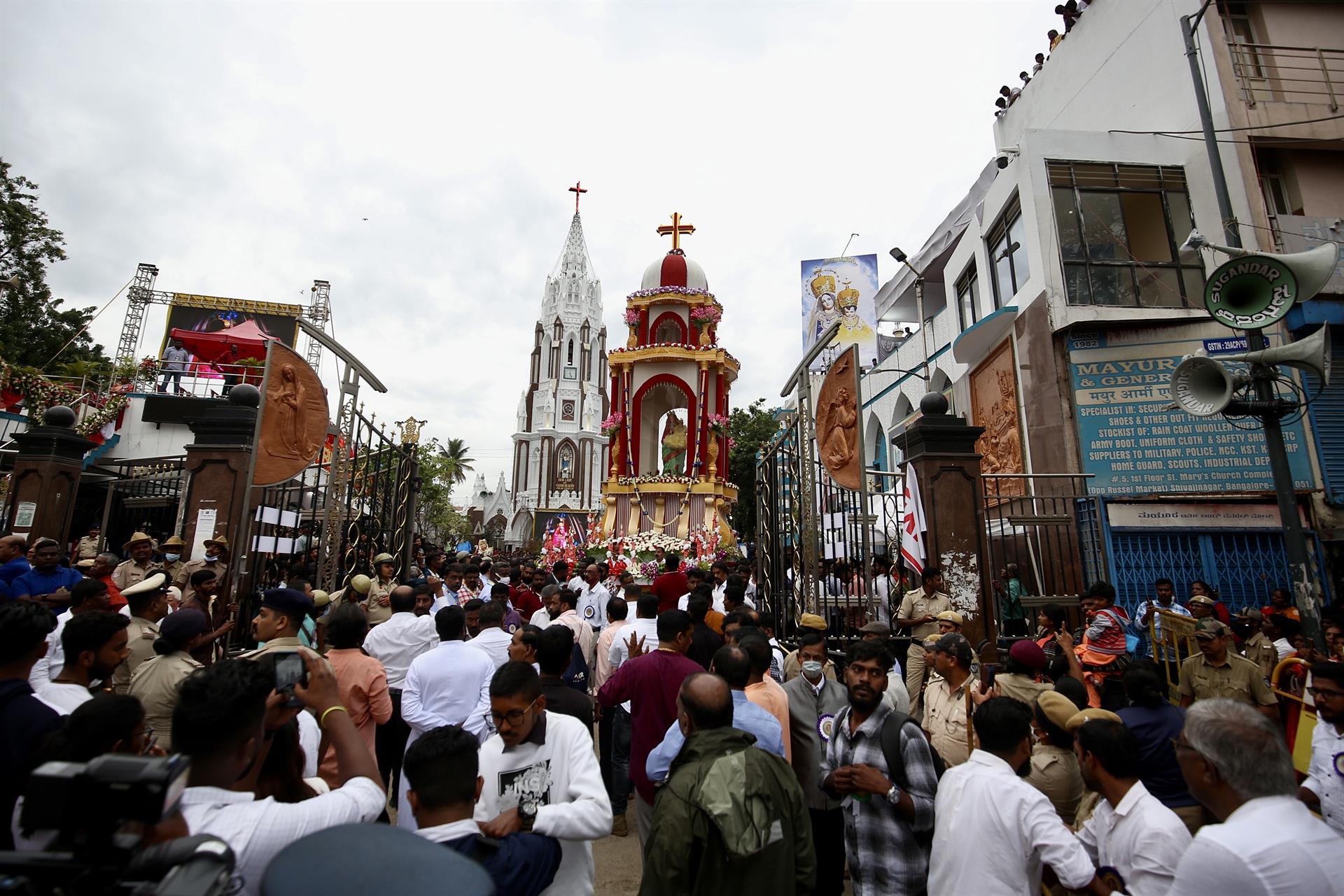 Devotos cristianos indios asisten a la fiesta anual de la Basílica de Santa María, en Bangalore.