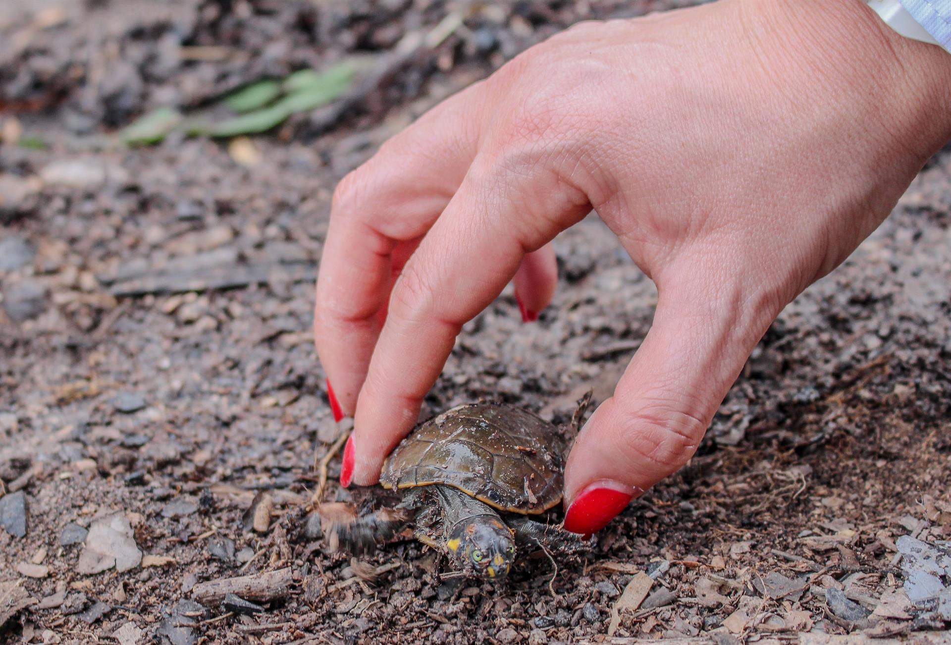 Detalle del momento de la liberación de una tortuga taricaya, en Iquitos, Perú. En mitad del caos de mototaxis y palmeras, en una de las principales plazas de Iquitos, ciudad enclavada en el corazón de la Amazonía peruana, descansan cientos de huevos de tortugas taricayas que, cuando eclosionen, pondrán rumbo a su hábitat natural, donde serán un símbolo de conservación y turismo sostenible. (Foto EFE/ Paula Bayarte)