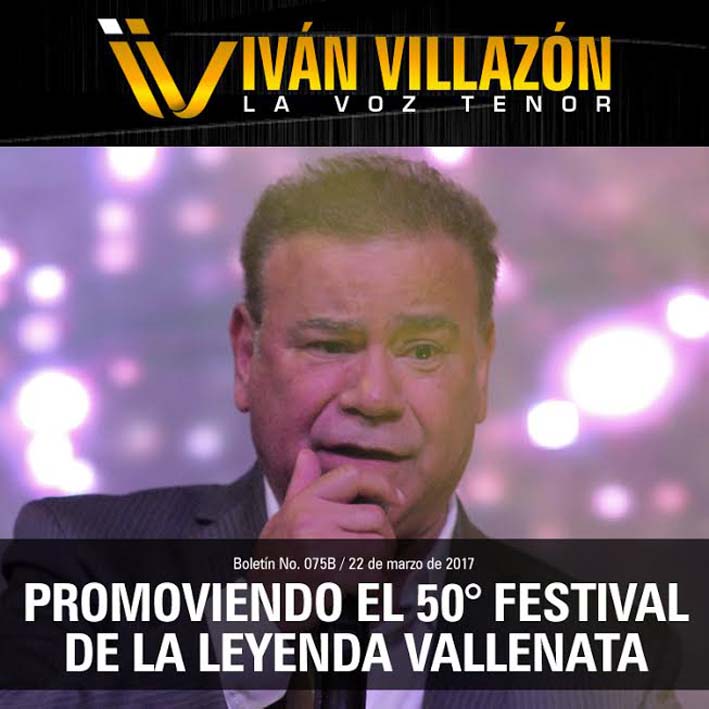 Iván Villazón por ser uno de los referentes de la música vallenata con amplia popularidad y poder de convocatoria, fue escogido por la Fundación Festival de la Leyenda Vallenata para ayudar en la promoción de su edición 50, invitando a los colombianos a Valledupar para que disfruten de la fiesta más importante de nuestro folclor del 26 al 30 de abril.