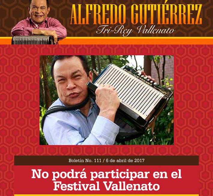 Razón por la cual el público, especialmente su inmensa fanaticada, esperaba ver la participación de Alfredo Gutiérrez en el Festival Vallenato ya que este año tendrá una connotación muy especial porque se elegirá al Rey de Reyes.