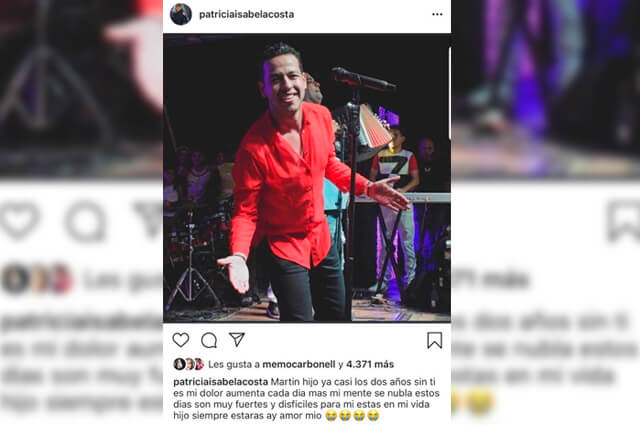 ‘‘Martín, hijo, ya casi los dos años sin ti, mi dolor aumenta cada día más, mi mente se nubla, estos días son muy fuertes y difíciles para mí, estás en mi vida, hijo, siempre estarás, ay amor mío’’.