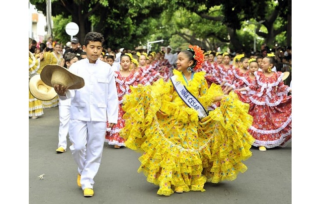 Momento en que la ‘Niña Cesar’ realizaba su representación en el desfile de Piloneras infantiles y juveniles. / Fotos: Cortesía Fundación Festival de la Leyenda Vallenato.